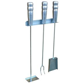 Caixa contém: 1 garfo churrasqueiro 49 cm; 1 rastelo espalhador de brasa 49 cm; 1 pá de limpeza 49 cm 1 suporte de parede.