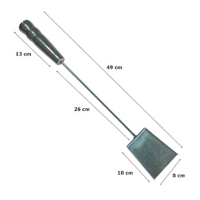 PÁ PARA LIMPEZA DA CHURRASQUEIRA Material do Cabo: Madeira revestido de Alumínio 13 cm Material do rastelo: Aço Medida do prolongador: 26 cm Comprimento da pá: 10 cm Largura da pá: 8,5 cm Medida total: 49 cm