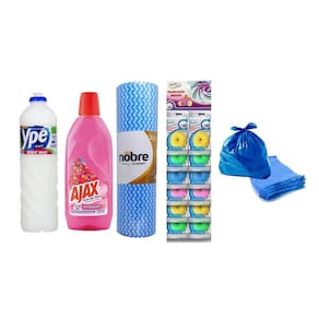 Contem no anuncio 1 Unidade Detergente Líquido Coco Ypê 500ml 3 Unidades Limpador Ajax Bouquet De Flores 500ml 1 Unidade Pano Multiuso Nobre Plus 30m X 30cm Azul Com 60 Panos 12 Unidades Pedra Sanitaria Sampa Clean 100 Unidades Saco De Lixo Azul 20l Pacote Ean: 7891454381004