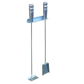 Caixa contém: 1 rastelo espalhador de brasa 59 cm; 1 pá de limpeza 59 cm 1 suporte de parede.