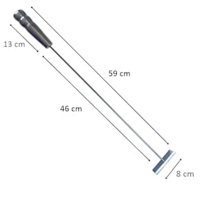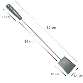 PÁ PARA LIMPEZA DA CHURRASQUEIRA Material do Cabo: Madeira revestido de Alumínio 13 cm Material do rastelo: Aço Medida do prolongador: 36 cm Comprimento da pá: 10 cm Largura da pá: 8,5 cm Medida total: 59 cm