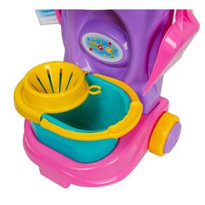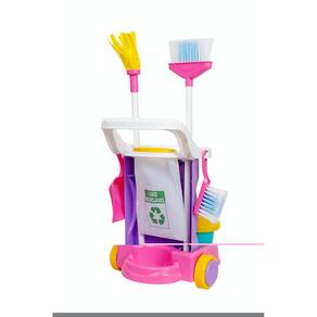 Kit Limpeza Infantil Cleaning Trolley RosaUm carrinho de limpeza completo com rodinhas e alça para empurrar onde quiser. Vem com 05 acessórios: vassoura com cabo plástico e cerdas de verdade. Esfregão com cabo plástico e base em microfibra absorvente. Balde com cesto que facilita na remoção de excesso de água, basta pressionar a base do esfregão contra o cesto. Espanador com cerdas de verdade. Pazinha. Vem com suporte e saco de lixo. Suporte para pendurar os acessórios.Desenvolvimento: coordenação entre olhos e mãos.Coordenação motora fina - mãos e dedos. Atenção e concentração.Compreensão de causa e efeito.Curiosidade e descoberta.Imitação.Dimensões do produto (l x a x p em cm): 33 x 47 x 33cm;Dimensões da embalagem: (l x a x p em cm): 20 x 49 x 32mm;Peso: 1,503 kg;Certificação: cebri/ innac 0087701a nm 300/2002 ocp0061