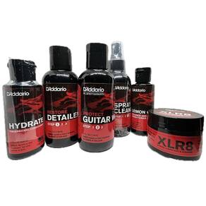 Kit Limpeza Manutenção Instrumentos Musicais Limpador D'Addario Kit com 6 unidades. Lubrificantes, cremes, sprays de polimento e limpadores para instrumentos musicais. O lubrificador XLR8 da DAddario mantém as cordas limpas e ao mesmo tempo facilita o deslize dos dedos reduzindo o atrito. Basta aplica-lo em seu instrumento de corda - Remove a fricção para um dedilhar mais rápido - Prolonga a vida útil da corda - Reduz o ruído causado pelos dedos - Aplicador fácil de usar - Embalado em uma lata de metal fechada que impede XLR8 de secar prematuramente -------------------------- O Creme de Polimento Restore DAddario é a solução ideal para manter o seu instrumento sempre em perfeito estado. Com uma ação profunda de limpeza e polimento, esse creme é projetado para remover marcas e até mesmo arranhões leves de todos os instrumentos. Com sua fórmula especial, o Creme de Polimento penetra nas camadas do acabamento do instrumento, proporcionando um brilho mais profundo e duradouro. Além disso, ele é especialmente desenvolvido para tirar sujeira e marcas resistentes, garantindo que o seu instrumento esteja sempre impecável. O Restore vem em uma embalagem de 118ml feita nos Estados Unidos. Ele faz parte do sistema de recuperação em três partes da Planet Waves, sendo a Etapa 1 desse processo. - Modelo PW-PL-01 - Conteúdo: 118 ml -------------------------- D'addario Protect Guitar Wax é um protetor e selante natural para todos os instrumentos com revestimento transparente, que combina a cera de Carnaúba brasileira de qualidade premium com uma fórmula avançada, resultando em um brilho incomparável de aplicação fácil e rápida. Etapa 2 de um sistema de 3 partes. - Protetor e selante natural - Aplicação rápida e fácil - Produz um brilho distinto - Seguro em todos os instrumentos com revestimento transparente - Etapa 2 de um sistema de restauração de três partes da D'Addario -------------------------- Indicado para violões, guitarras, baixos, banjos, bandolins e ukuleles. - Frasco com 118 ml - Modelo PW-PL-03 - Planet Waves D'Addario - Spray de limpeza e manutenção - Remove poeira, impressões digitais e pequenas imperfeições - Realça a cor natural e a beleza do seu instrumento - Pode ser como limpador de instrumentos multifuncional independente -------------------------- O Hydrate by D'Addario é o melhor tratamento para restaurar o caráter da escala de guitarra em todos os instrumentos de cordas. A fórmula exclusiva de óleos e produtos de limpeza do Hydrate remove a sujeira enquanto restaura a umidade do braço, evitando rachaduras e outros danos que podem acontecer quando a escala fica seca. - Frasco com 59 ml - Modelo PW-FBC - Planet Waves - Auxilia na remoção de sujeira, gordura e cera - Ajuda a condicionar o seu instrumento para resistir à secura - Prolonga a vida útil dos instrumentos -------------------------- O Óleo de Limão da D'Addario e um limpador natural desenvolvido para remover sujeira e hidratar o instrumento, evitando o ressecamento e prolongando a vida útil. - Modelo: DAddario Planet Waves PW-LMN - Frasco com 59ml