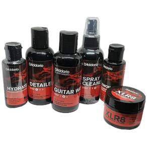 Kit Limpeza Manutenção Instrumentos Musicais Limpadores Kit com 6 unidades - 1 - 1 Spray Cleaner - 1 Guitar Wax - 1 Óleo de limão - 1 Lubrificante de cordas - 1 Hydrate ------------ O lubrificador XLR8 da DAddario mantém as cordas limpas e ao mesmo tempo facilita o deslize dos dedos reduzindo o atrito. Basta aplica-lo em seu instrumento de corda - Remove a fricção para um dedilhar mais rápido - Prolonga a vida útil da corda - Reduz o ruído causado pelos dedos - Aplicador fácil de usar - Embalado em uma lata de metal fechada que impede XLR8 de secar prematuramente -------------------------- O Creme de Polimento Restore DAddario é a solução ideal para manter o seu instrumento sempre em perfeito estado. Com uma ação profunda de limpeza e polimento, esse creme é projetado para remover marcas e até mesmo arranhões leves de todos os instrumentos. Com sua fórmula especial, o Creme de Polimento penetra nas camadas do acabamento do instrumento, proporcionando um brilho mais profundo e duradouro. Além disso, ele é especialmente desenvolvido para tirar sujeira e marcas resistentes, garantindo que o seu instrumento esteja sempre impecável. O Restore vem em uma embalagem de 118ml feita nos Estados Unidos. Ele faz parte do sistema de recuperação em três partes da Planet Waves, sendo a Etapa 1 desse processo. - Modelo PW-PL-01 - Conteúdo: 118 ml -------------------------- D'addario Protect Guitar Wax é um protetor e selante natural para todos os instrumentos com revestimento transparente, que combina a cera de Carnaúba brasileira de qualidade premium com uma fórmula avançada, resultando em um brilho incomparável de aplicação fácil e rápida. Etapa 2 de um sistema de 3 partes. - Protetor e selante natural - Aplicação rápida e fácil - Produz um brilho distinto - Seguro em todos os instrumentos com revestimento transparente - Etapa 2 de um sistema de restauração de três partes da D'Addario -------------------------- Indicado para violões, guitarras, baixos, banjos, bandolins e ukuleles. - Frasco com 118 ml - Modelo PW-PL-03 - Planet Waves D'Addario - Spray de limpeza e manutenção - Remove poeira, impressões digitais e pequenas imperfeições - Realça a cor natural e a beleza do seu instrumento - Pode ser como limpador de instrumentos multifuncional independente -------------------------- O Hydrate by D'Addario é o melhor tratamento para restaurar o caráter da escala de guitarra em todos os instrumentos de cordas. A fórmula exclusiva de óleos e produtos de limpeza do Hydrate remove a sujeira enquanto restaura a umidade do braço, evitando rachaduras e outros danos que podem acontecer quando a escala fica seca. - Frasco com 59 ml - Modelo PW-FBC - Planet Waves - Auxilia na remoção de sujeira, gordura e cera - Ajuda a condicionar o seu instrumento para resistir à secura - Prolonga a vida útil dos instrumentos -------------------------- O Óleo de Limão da D'Addario e um limpador natural desenvolvido para remover sujeira e hidratar o instrumento, evitando o ressecamento e prolongando a vida útil. - Modelo: DAddario Planet Waves PW-LMN - Frasco com 59ml - Envios diários