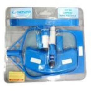 01 kit limpeza para piscinas netuno Sendo: - 01 aspirador asa delta - 01 peneira plástica cata folha - 01 escova curva 44 cm - 02 ponteira rosca esquerda - 01 adaptador com rosca fina. Dimensões aproximadas do produto com embalagem cm - axlxp:10 x 3 x 3 cm Material: polipropileno Quantidade de peças: 6 Marca: netuno Referência do produto no fornecedor:269 Modo de usar: intruções na embalagem Função:limpeza e manutenção piscina Atenção: mangueira e cabo não acompanham o produto. Ean: 7898931842010