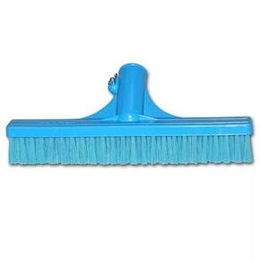 Possui base com cerdas em nylon, resistentes e macias, que nao agridem o fundo da piscina.