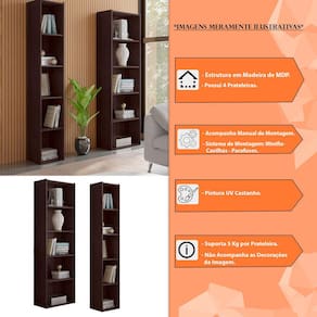 Kit Livreiro para Home Office de 60cm e 33 cm Julia Castanho É perfeito para armazenar livros e decorações. Possui 4 prateleiras formando 5 nichos, permitindo organizar o interior de acordo com a sua necessidade, e possui estrutura de qualidade em MDP e acabamento Pintura UV, o que confere maior durabilidade e resistência ao produto.