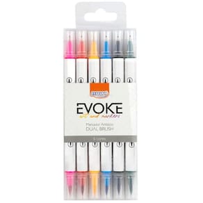 Marcador Artístico Evoke Dual Brush Pen Blister Com 6 Cores