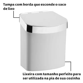 Fabricada em plástico e com tamanho compacto, a Lixeira é ideal para ser deixada sobre a pia ou a bancada. Sua tampa removível permite deixar o saquinho de lixo fixo e não aparente.