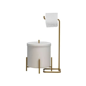 9999-5599-5900 Lixeira Branca/Dourada com Papeleira Dourada