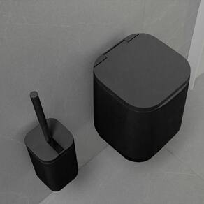 Kit Lixeira 6L + Escova Sanitária Suspensa Aura Preto Ou - Na sua casa