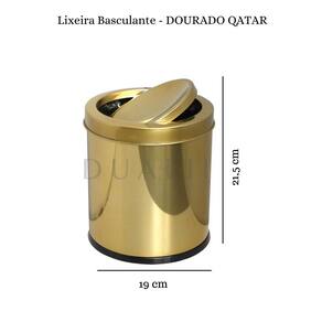 Lixeira de Inox Basculante e Escova Sanitária - DOURADOLixeira BasculanteCapacidade: 5,4 litros Dimensões: 21,5cm altura x 19cm diâmetro Material: Aço InoxMaterial do cesto removível: PlásticoPossui cesto de descarte removível 5,4 litros .A lixeira possui pintura de alto padrão e brilho, o que a torna mais resistente à umidade e à exposição ao sol.Escova SanitáriaDimensões: 10cm largura x 38cm altura Material da base: Aço InoxMaterial da escova: PlásticoCuidados com o produto: Utilize esponja macia e lave com sabão ou detergente neutro. Enxague e seque bem para evitar manchas. Seque manualmente e evite produtos abrasivos.Todos os nossos produtos estão disponíveis no Red Gold, Rose Gold, Cobre e outros verificar disponibilidade de cores .Conheça também nossos acessórios diversos para decoração de lavabo, cozinha e outrosTem alguma pergunta ou quer verificar modelos e cores Tire sua dúvida no chat Responderemos o mais rápido possível.-dualii Metais Marca: Dualii Metais