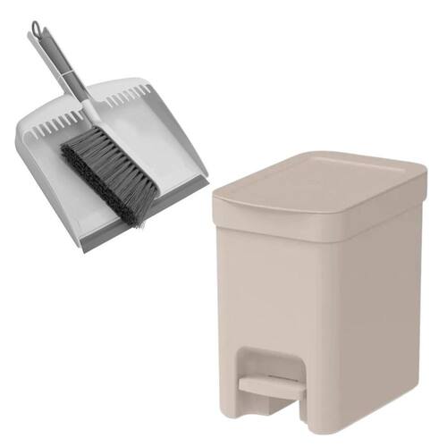 Kit Lixeira 6L com Pedal Linha Trium + Conjunto Pá e Escova para Limpeza - OU Acabamento Premium Cerdas Macias Recolhimento Eficiente Design Funcional e Compacto