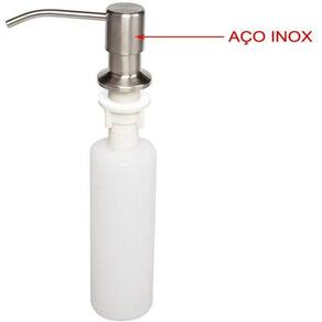 - 1 Lixeira de embutir com tampo em aço inox e balde plástico - 1 dosador de sabão de embutir de aço inox com reservatório de plástico.