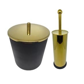Este kit para banheiro e lavabo lixeira dourada e preta e escova sanitária france by fineza irá agregar beleza e elegância no seu ambiente Os itens são produzidos em aço inox de alto padrão e possuem detalhes em polipropileno plástico . A escova sanitária possui um acabamento interno de plástico, evitando que os produtos químicos utilizados nas cerdas não entrem em contato direto com o inox, aumentando assim a durabilidade do produto. A lixeira possui o seu corpo em plástico e sua tampa em aço inox dourado. Não possui balde interno removível O dourado das peças fineza não são pinturas e sim são adquiridos através de uma nova tecnologia chamada de pvd deposição física de vapor onde o nitreto de titânio adere no inox, dando o tom dourado nas peças. Portanto, os produtos fineza são produtos de qualidades únicas e exclusivas, pois o dourado aumenta a durabilidade do inox evitando mais ainda o enferrujamento e desgaste das peças. O dourado não sai e não descasca com o passar do tempo desde que as recomendações abaixo sejam seguidas Contém: 1 lixeira preta com tampa em em aço inox dourado com capacidade para 5l altura 21cmx18cm de circunferencia 1 escova sanitária france em aço inox dourada