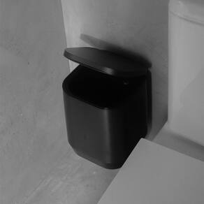 Lixeira de piso e parede Ou Linha Aura - Preto Detalhes do produto Possibilidade de uso no chão ou fixada na parede Fixação com adesivo extremamente resistente Sem necessidade de furos na parede Tecnologia Ultra Click de fixação fácil e segura Suporta até 4kg Sistema de fechamento suave na tampa.