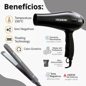 Kit Secador Lizz Fashion 2200W 220V + Prancha Neo Titanium Bivolt | Potência e Estilo Profissional na Sua Rotina