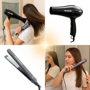 Combinação prática e completa: secador + prancha com tecnologias avançadas.