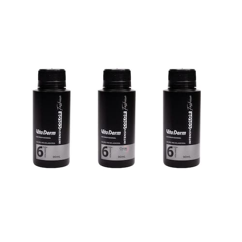 Vita Derm Intensiv Color Fashion Locao Reveladora 6 Vol 90ml Loção Reveladora 6 Vol. Vita Derm Intensiv Color Fashion e indicada para cabelos que vao passar por processos químicos de Transformacão de cor. Trata e protege os fios durante o processo. A Loção Reveladora Vita Derm Intensiv Color Fashion 6 Vol foi desenvolvida para ser utilizada na preparação De colorações e descolorações ou na tonalizacao. A emulsão cremosa e de alta rentabilidade e revela de 2 a 3 tons. Conselho de Aplicação Siga atentamente as instruções na embalagem do produto e na bula da coloração. Adicione a quantidade Indicada, conforme o procedimento a ser utilizado. Observações: Recomendamos que este produto seja apenas por profissionais; Gestantes e lactantes devem consultar seu médico antes de fazer o uso; Não deve ser aplicado em menores de 15 anos; Indicamos a realização de um teste de toque e de mecha antes do início do procedimento; Em caso de irritação ou ferida pré-existente no couro cabeludo, consulte um médico antes da aplicação; Utilize uma luva descartável no momento da aplicação. Dica O teste de toque e muito importante antes do procedimento para evitar alergias na pele, coceira ou Ardencia no local. Resultado Com alta rentabilidade promove perfeita revelacão de piamentos. Marca: Não Informado Ean: 07898560464102