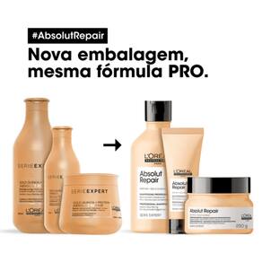 L'Oréal Professionnel Serie Expert Absolut Repair Gold Quinoa + Protein - Shampoo 300ml: reestrutura a fibra capilar, confere brilho e leveza durante a limpeza diária dos fios.