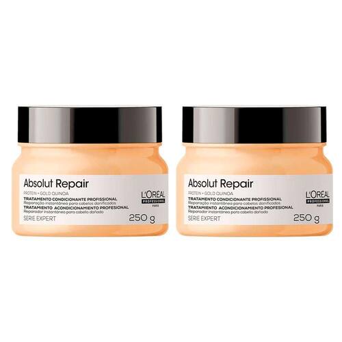 A Máscara de Tratamento Absolut Repair Gold Quinoa foi desenvolvido especialmente para cabelos danificados, pois ela promove uma reparação sob medida e reconstrução instantânea dos fios, trazendo mais brilho, maciez e uma hidratação profunda sem pesas os seus cabelos. RESULTADO: Multifuncional SUGESTÕES DE USO:Aplique a máscara após a lavagem com o shampoo; 2. Distribua mecha por mecha; 3. Deixe agir de 3 a 5 minutos; 4. Finalize enxaguando abundantemente. ITENS INCLUSOS:2 Máscara de Reparação L'Oréal Professionnel Serie Expert Absolut Repair Gold Quinoa 250 g cada. Marca: Não Informado