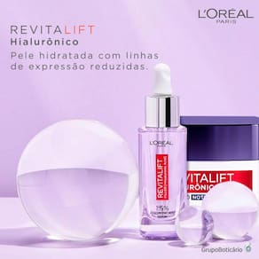 L'Oréal Paris Revitalift Hialurônico - Sérum Anti-Idade 30ml: possui 1,5% de ácido hialurônico em sua composição, por isso, promove uma pele super hidratada. Além de reverter e reduzir sinais de idade.