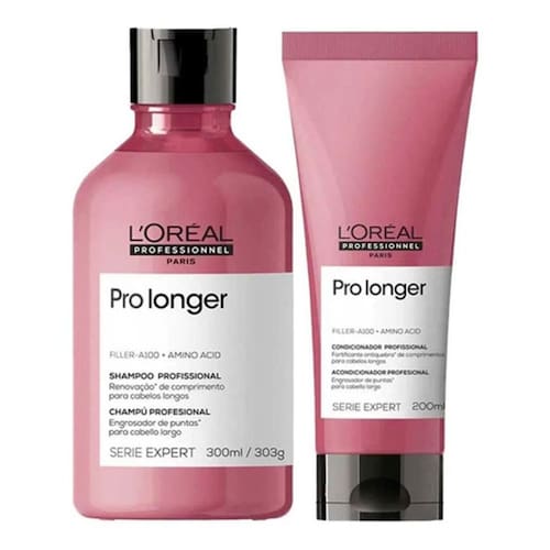 Kit L'Oréal Professionnel Pro longer Duo (2 Produtos)Kit com shampoo e condicionador para cabelos com pontas afinadas. Kit L'Oréal Professionnel Pro longer Duo aumenta a densidade e maciez dos fios.O Kit L'Oréal Professionnel Pro longer Duo auxilia na renovação da fibra capilar, fortalece e proporciona cabelos mais saudáveis e muito mais brilhantes.Contém:L'Oréal Professionnel Pro longer - Shampoo 300ml: com tecnologia Co-Emulsão que apresenta moléculas 50 vezes menores do que as tradicionais, limpa e penetra na fibra capilar, formando um filme protetor.L'Oréal Professionnel Pro longer - Condicionador 200ml: preenche instantaneamente as pontas, deixando os cabelos sedosos, hidratados e brilhantes