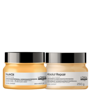 O Kit L'Oréal Professionnel Serie Expert Absolut Repair NutriOil Duo I traz 2 máscaras de tratamento poderosas, que ajudam a renovar o brilho e maciez dos fios. Além disso, estimulam o crescimento dos fios já existentes contra quebra e com resistência.