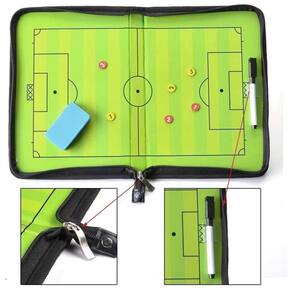 Placa de Treinamento de Futebol Dobrável e Apagável Ideal para Treinadores Profissionais e Amadores!Características Principais:Portátil e Compacta: Design dobrável e leve, perfeita para levar ao campo, sala de reuniões ou qualquer lugar. Ideal para treinadores que precisam de mobilidade sem abrir mão da ície Apagável a Seco: Acompanha uma caneta especial e revestimento apagável, permitindo ajustes rápidos e limpos durante explicações ou ética e Funcional: Com material magnético de alta qualidade, facilita o posicionamento de ícones magnéticos (jogadores e bola). O layout permanece estável mesmo durante movimentos frequentes.Durabilidade e Materiais Premium: Fabricada em couro sintético e papelão reforçado, oferece resistência, estabilidade e longa vida útil, mesmo em condições de uso intenso.Versatilidade Completa: Ideal para reuniões estratégicas, treinos diários, instruções individuais ou debates táticos em grupo. Inclui todos os acessórios necessários para uso imediato: caneta, borracha e marcadores magnéticos.Especificações Técnicas:Material: Couro sintético e papelãões Fechado: Aproximadamente 28 x 20 ões Aberto : Aproximadamente 28,3 x 42,3 údo da Embalagem:1 x Placa de Treinamento de x Caneta Marcadora Apagá x Marcadores Magné ferramenta indispensável para treinadores que buscam precisão e praticidade em cada partida ou treino!