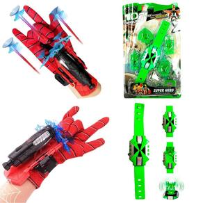 desperte a imaginação com nosso incrível kit de brinquedos experimente a aventura com o relógio do ben 10, onde você controla o tempo, e mergulhe na ação com a luva do homem-aranha. Diversão garantida para pequenos heróis