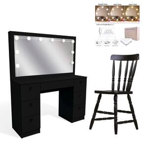 Penteadeira Ditália 7 Gav. PE-80 Preto c/ Kit Luz Camarim