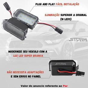 Kit luz de placa ford new fiesta par lâmpadas led cor branca Par luz de placa super led led branco para ford Somos a storm parts, vendemos peças importadas e nacionais de alta qualidade com garantia, a nossa equipe especializada está pronta para tirar qualquer duvida, conte sempre conosco. Compatível com:Novo ka sedan: 2015, 2016, 2017, 2018, 2019, 2020Novo ka hatch: 2015, 2016, 2017, 2018, 2019, 2020Nova ecosport: 2013, 2014, 2015, 2016, 2017, 2018, 2019New fiesta: 2013, 2014, 2015, 2016, 2017, 2018, 2019Focus 2008 a 2014 Especificações:Condição: novo com garantia.Origem: importadoLâmpada: placa de led integrada 18 micro leds A prova d'agua.Duração led: estimado em 50 mil horas em utilizaçãoCor da luz: super branca Principais perguntas: P. Necessita adaptação para instalar P. Acusa algum erro no painel do carro P. Anuncio é referente a uma unidade o parR. Anuncio referente ao par lado direito + lado esquerdo P. Qual a condição do produtoR. Vendemos somente produtos novos e lacrados Apesar de fácil instalação recomendamos a instalação por um profissional.