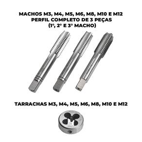 Kit para roscar macho e tarraxa m3 a m12 45 peças industrial aço hss htom Kit profissional / industrial aço rápido hss de macho e tarraxa com machos m3, m4, m5, m6, m8, m10 e m12 com perfil completo de 3 peças 1, 2 e 3 macho - marca: htom - referência: htom-42183 - indicado para rosqueamento - kit em aço rápido hss de alta qualidade para e industrial - machos de m3 a m12 com perfil completo de 3 peças 1, 2 e 3 macho - 21 machos manual em aço rápido-hss - 7 cossinetes em aço rápido-hss - 7 brocas para metal em aço rápido-hss - 2 vira-macho desandador com corpo em liga de aço e zinco e haste em aço carbono cromado - 5 porta-cossinetes com corpo em liga de aço e zinco e haste em aço carbono cromado - 1 chave de fenda em aço carbono temperado - 1 pente de rosca em aço carbono - dimensões da maleta: 34 x 22 x 5,5cm - peso bruto: 2,2kg - : 90 dias Itens inclusos: - 7 jogos de machos manuais com 3 peças nas medidas m 3,00 x 0,50 / m 4,00 x 0,70 / m 5,00 x 0,80 / m 6,00 x 1,00 / m 8,00 x 1,25 / m 10,00 x 1,50 / m 12,00 x 1,75 - 7 cossinetes nas medidas m 3,00 x 0,50 / m 4,00 x 0,70 / m 5,00 x 0,80 / m 6,00 x 1,00 / m 8,00 x 1,25 / m 10,00 x 1,50 / m 12,00 x 1,75 - 7 brocas para metal din 338 nas medidas 2,50 mm / 3,30 mm / 4,20 mm / 5,00 mm / 6,80 mm / 8,50 mm / 10,20 mm - 5 porta-cossinetes nas medidas 20 x 5 mm / 20 x 7 mm / 25 x 9 mm / 30 x 11 mm / 38 x 14 mm - 2 vira-machos desandador modelos vm-1 / vm-2 - 1 chave de fenda - 1 pente de rosca - 1 maleta plástica