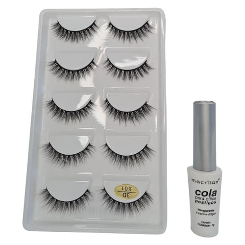 Kit Macrilan Cola Cílios Postiços+Cílios 3D 5 Pares X01 Aqui cuidamos com excelência do que temos de melhor: nossa autoestima Para nós cuidar de você não é custo, é investimento Esperamos sua compra e seja bem-vindo ao nosso universo da beleza Ean: 7799244269757