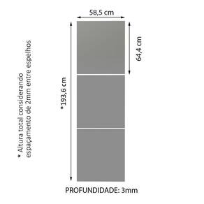 - Três (3) espelhos de 64,4 cm de altura x 58,5 cm de largura e 3 mm de espessura