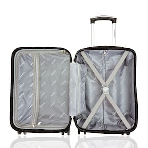 - Kit com mala de bordo e frasqueira rígida em ABS.
