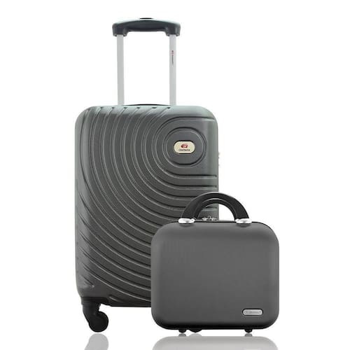 - Kit com mala de bordo e frasqueira rígida em ABS.