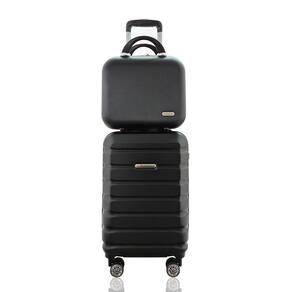 - Kit com mala de bordo e frasqueira rígida em ABS.