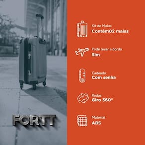 A Mala de Bordo Adventure Fortt, foi desenvolvida com o que há de mais moderno. Ela é produzida em ABS, que é um material resistente e de fácil limpeza. Possui 4 rodas com giro de 360, é equipada com cadeado fixo, com senha configurável para a proteção de seus itens e internamente, possui cintas elásticas para lhe ajudar na organização de seus pertences.