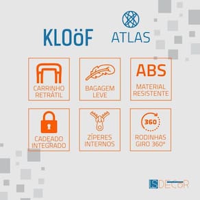 Conjunto premium com 2 malas de viagem Atlas. Em ABS, garante sofisticação e resistência. Possui rodas duplas 360, alça de mão, puxador ergonômico, alça retrátil ajustável, cadeado com segredo numérico. Na parte interna, amplo compartimento, forro personalizado em tecido, cinta elástica com trava e bolso telado em zíper.