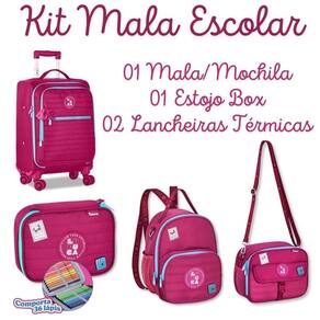 Leve o conceito de organização, estilo e praticidade a outro nível com o super kit escolar lu24683kt Um kit completo e premium para quem valoriza qualidade e elegância, sem abrir mão de funcionalidade. Composto por 4 itens incríveis, este conjunto combina design moderno com materiais de altíssima qualidade, ideal para atender às necessidades escolares e de viagem. 1. Mala escolar lu24679 Uma mala impressionante, espaçosa e super versátil seja para o dia a dia escolar ou como uma mala de viagem, sua abertura principal ampla garante fácil acesso aos itens. Oferece: Três compartimentos principais com zíper, além de bolsos internos para manter tudo bem organizado. Compartimento acolchoado exclusivo para notebook e tablet, assegurando proteção e segurança. Interior com elásticos estabilizadores que mantêm seus materiais sempre no lugar. Mobilidade incomparável: com rodinhas que giram 360, alça de mão superior e lateral, além de alça retrátil e ajustável. Confeccionada em nylon com matelassê, detalhes de luxo como chaveiro decorativo e zíper bicolor, exalando sofisticação. Dimensões aproximadas: 48x35x19 cm. 2. Lancheira 2 em 1 lu24680 Moderna e versátil, pode ser Utilizado como lancheira ou bolsa de uso diário. Suas características incluem: Alças ajustáveis, podendo ser Utilizado nas costas, como bolsa transversal ou pela alça superior de mão. Dois compartimentos com zíper e um bolso lateral telado, perfeito para garrafinhas ou pequenos acessórios. Dimensões aproximadas: 27x20x12 cm. 3. Lancheira lu24681 Estilo e funcionalidade em um único item. Com design encantador, é perfeita para conservar os alimentos organizados e fresquinhos. Compartimento principal térmico, garantindo que os alimentos fiquem na temperatura ideal. Bolso frontal com fechamento por fivela moderna e lateral telado. Alça de ombro ajustável para conforto no transporte. Dimensões aproximadas: 20x24x14 cm. 4. Estojo box lu24682 Compacto e funcional, ideal para organizar seus materiais escolares com eficiência. Possui: Espaço interno com elásticos para até 36 lápis, além de um estojo adicional com zíper. Dimensões aproximadas: 22x16x06 cm. Um kit completo e sofisticado, disponível em 3 cores: preto, rosa e azul. Confeccionado em nylon de alta durabilidade, com acabamento em matelassê, cadarços logados acetinados e detalhes luxuosos como pin de metal e etiqueta de borracha. A escolha perfeita para quem busca excelência em todos os detalhes.
