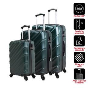 Fabricada em ABS, esse conjunto é mais resistente e tem maior durabilidade de uso, possui 4 rodas giratórias em 360, que facilita a locomoção, alça de mão, alça lateral no tamanho M e fechadura com segurança.