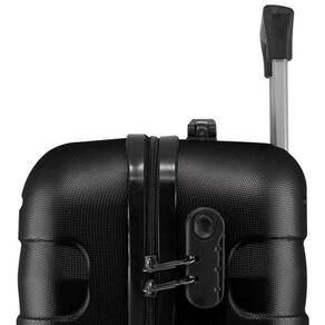 Em termos de segurança, a mala de viagem pequena conta com um cadeado fixo com segredo, garantindo a proteção dos seus pertences durante a viagem.