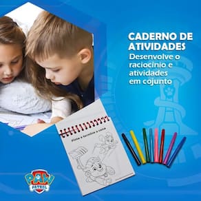 Transforme o Dia das Crianças em uma aventura criativa com a Maleta de Atividade Pintura Patrulha Canina. Com os personagens icônicos como Chase, Marshall, Skye e toda a equipe, essa maleta é perfeita para estimular a imaginação, criatividade e coordenação motora enquanto eles pintam e desenham suas próprias histórias!