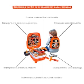 - Desenvolve habilidades de solução de problemas: Brincar com as ferramentas envolve desafios como montar ou consertar brinquedos, estimulando o raciocínio lógico e a capacidade de resolver problemas.