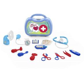 que um médico(a) de verdade usa para cuidar do dodói. Tudo fica organizado dentro da prática maleta, que contém vários acessórios para brincar de médico(a), entre eles tem o termômetro, o medidor de pressão, o estetoscópio, o nebulizador e até um mini prontuário.