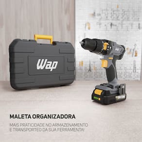 Conheca o Kit Maleta Parafusadeira e Furadeira WAP 21V 3/8 K21, um produto de alta performance que combina potencia e versatilidade para os mais variados trabalhos. Alimentada por bateria de 21V e 2,00 Ah, a ferramenta possui motor universal capaz de atingir ate 1400 rotacoes por minuto. O kit acompanha uma bateria, carregador e maleta para transporte e armazenamento seguros, alem de clipe de cinto para facilitar o manuseio. O modelo K21 ID01 da WAP e equipado com mandril de 10 mm e tem capacidade de perfuracao de 20 mm em madeira, 6 mm em metal e 13 mm em concreto. Com controle de torque e 21 posicoes de ajuste, oferece precisao e controle, permitindo adaptar a ferramenta a tarefa. O torque maximo de 45 Nm garante forca suficiente para os trabalhos mais exigentes. Recomendado para profissionais e entusiastas do faca-voce-mesmo, o kit e ideal para montagem de moveis, instalacoes, reparos e diversas tarefas de perfuracao e aparafusamento. O produto tem garantia do fabricante de 12 meses, com 6 meses para a bateria. Com peso de apenas 1,10 kg, a Parafusadeira e Furadeira WAP K21 e leve, robusta e indispensavel no seu kit de ferramentas. Resumo das caracteristicas Produto: Parafusadeira e Furadeira Marca: WAP Modelo: K21 ID01 Alimentacao: Bateria Potencia da bateria: 21 V Acompanha bateria: Sim Amperagem da bateria: 2,00 Ah Acompanha carregador: Sim Quantidade de baterias: 1 Mandril: 10 mm Capacidade de perfuracao: Madeira 20 mm, Metal 6 mm, Concreto 13 mm Conteudo da embalagem: 1 bateria 2Ah, 1 carregador, 1 maleta e clipe de cinto Peso do produto: 1,10 kg Acompanha maleta: Sim Garantia do fabricante: 12 meses Rotacao maxima: 1400 rpm Torque maximo: 45 Nm Posicoes de torque: 21 Referencia: K21-ID01