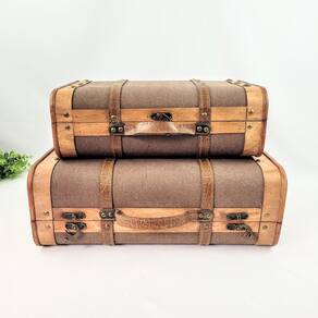 Kit Maletas De Madeira Decorativa Marrom Baú 45/38Cm 2Pç