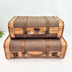 Kit Maletas De Madeira Decorativa Marrom Baú 45/38Cm 2Pç