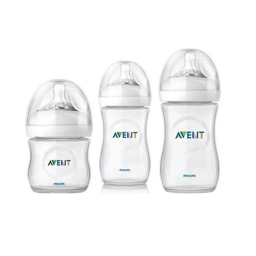 O kit contém 3 mamadeiras (125ml, 260ml e 330ml).